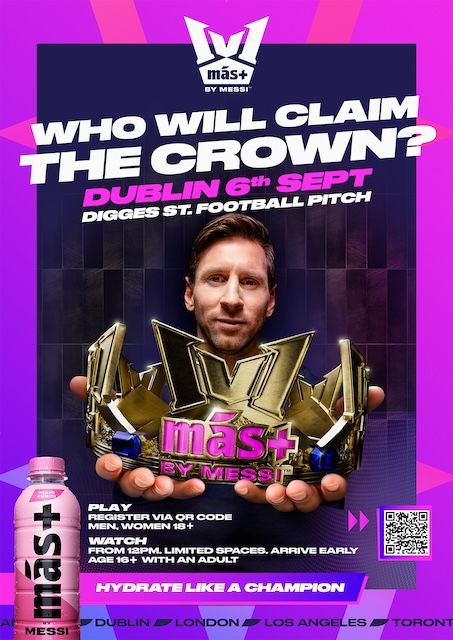 Más+ by Messi is supporting grassroots football here in Ireland – giving players a platform, celebrating the culture of the game, and working hand-in-hand with the community to create something unforgettable! Más+ by Messi delivers a unique blend of electrolytes, vitamins, and minerals to help you hydrate like a champion, stay sharp and perform at your best. You can learn more about the brand right here.
