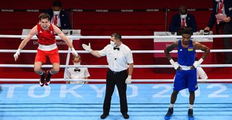 'He's fighting Ireland's Aidan Walsh!' – @aidanwalsh997 is looking forward to his semi-final bout against Britain's Pat McCormack on Sunday after securing bronze#boxing #olympics #tokyo2020 #RTESport