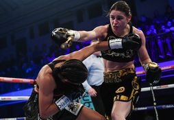 In the seventh round, McCaskill came out for blood. She marched forward, bit down on her mouthpiece and let fly with a wild flurry of punches against the ropes. The referee took a point off Taylor for holding after warning her earlier in the fight. McCaskil took a seat midway through the round, but the referee deemed it to be a stumble as opposed to a knockdown.
