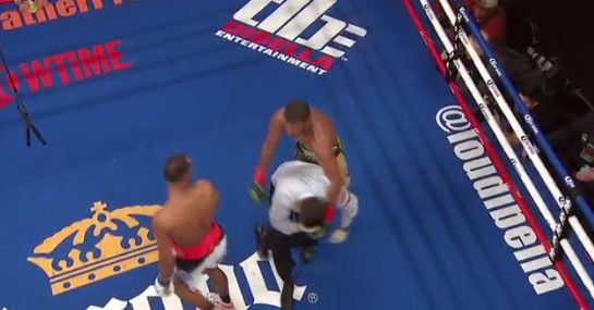 Referee Arthur Mercante Jr was almost knocked off his feet midway through the fight as he stepped in to pull the fighters apart.