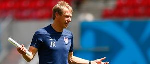 RECIFE, BRAZIL – JUNE 25: Head coach Jurgen Klinsmann of the United States speaks to his assistants during the US Men’s National Team training at Arena Pernambuco on June 25, 2014 in Recife, Brazil. (Photo by Kevin C. Cox/Getty Images)