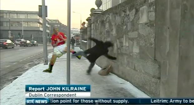 Wait a sec, I thought the RTE News guy slipped on the ice!