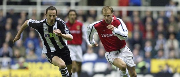 The pass from Pires is fizzed at the Dutchman’s feet and he has fractions of a second to decide what to do. Anyone else would have controlled it with their back to goal and then worked out how to beat Nikos Dabizas or have a quick shot on goal.