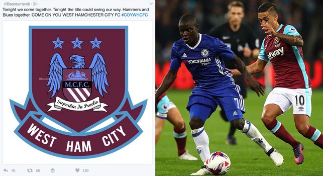With Chelsea facing West Ham at the London Stadium on Monday evening, the tweet below called for City fans to unite with their West Ham counterparts in willing Slaven Bilic’s men to a win, in the faint hope that a Chelsea defeat might open the door for a City title charge.