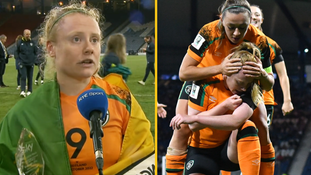Talking to Tony O’Donoghue, with a tricolour draped around her shoulders, Amber Barrett spoke of how much it meant to help Ireland qualify for the World Cup. She also discussed how the Creeslough tragedy had touched her own life.