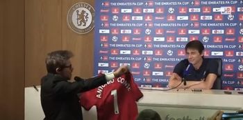 Chelsea manager Antonio Conte was caught off guard by an Italian prankster at his pre-match press conference in Cobham this afternoon.