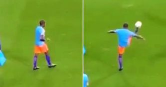 As both teams busied themselves warming up, the Liverpool man seemed content enough to wander around the pitch sans ball. Then, with a Dutch official walking past him, and no doubt worried he’d get told off, he decided to simply magic one up.