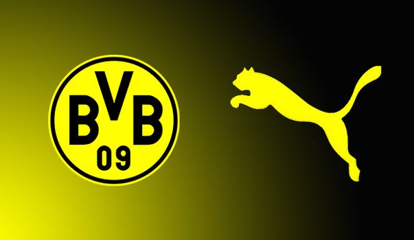 Made by PUMA, the shirt is predominantly black with yellow hoops on its sleeves. Also in yellow, a grainy pattern can be seen across the jersey’s shoulders and chest.