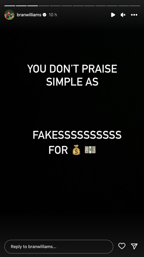 He continued: “You don’t praise simple as. Fakessssssssss for [money emoji].”