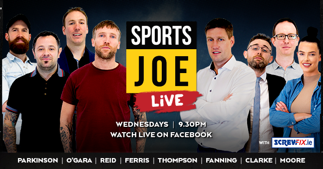 SportsJOE Live kicks off this Wednesday night at 9.30pm on both JOE and SportsJOE’s Facebook pages and via Periscope on @JOEdotie and @SportsJOEdotie‘s Twitter pages.