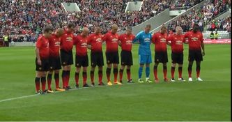 Teams of Manchester United and Celtic/Republic of Ireland legends bowed their heads in respect for former Republic of Ireland and Manchester United midfielder Liam Miller.