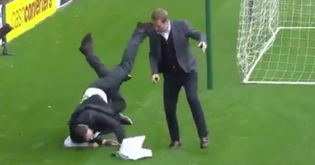 It’s been a weekend for men in suits hitting the deck in Scotland as, 24 hours earlier Rangers manager Pedro Caixinha went flying under an accidental challenge from his own player, Josh Windass.