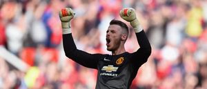 MANCHESTER, ENGLAND – OCTOBER 05: David De Gea of Manchester United celebrates at the end of the Barclays Premier League match between Manchester United and Everton at Old Trafford on October 5, 2014 in Manchester, England. (Photo by Michael Regan/Getty Images)
