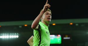 SUNDERLAND, ENGLAND - SEPTEMBER 22: Kevin de Bruyne of Manchester City celebrates scorin their second goal during the Capital One Cup third round match between Sunderland and Manchester City at Stadium of Light on September 22, 2015 in Sunderland, England. (Photo by Ian MacNicol/Getty Images)