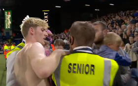However, the little lad doesn’t make it far as he is quickly swept up by stewards in a no-nonsense fashion and as Gordon goes over to resolve the situation and embrace the fan, the fan then lets go of the boy as he goes to grab the player’s shirt.