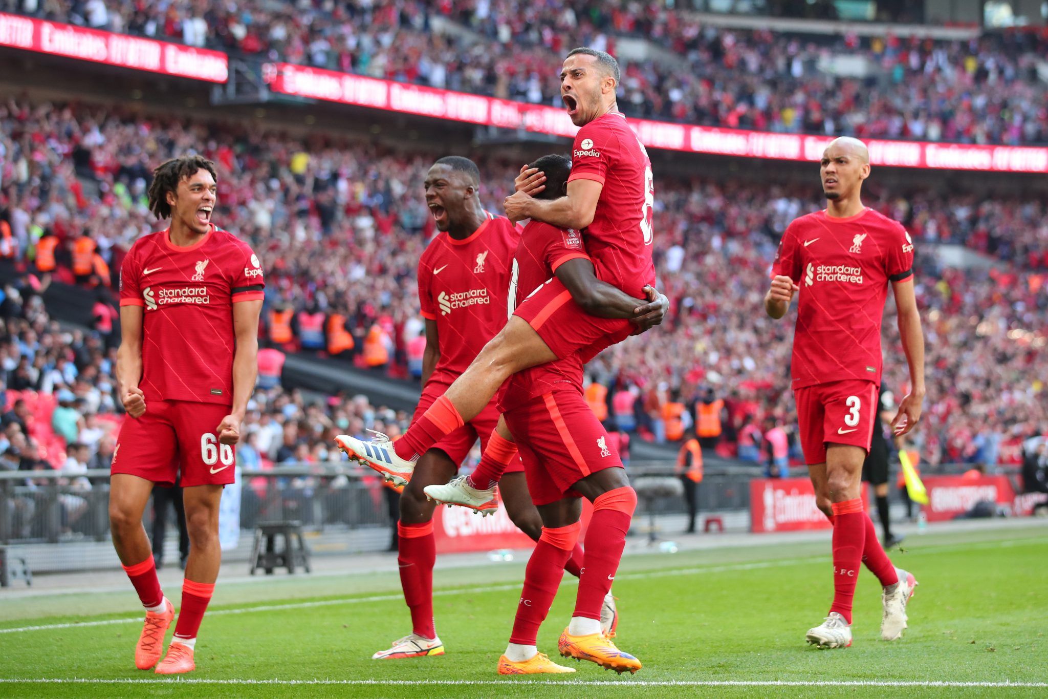 Who scored a brace for Liverpool as the Reds secured their place in the FA Cup final with a 3-2 victory over Manchester City?