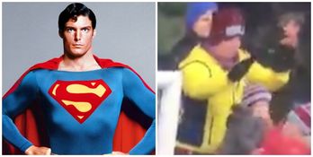 With the woman helpless to do anything in the face of the fast-approaching football, the man behind the doomed duo sprung into action.