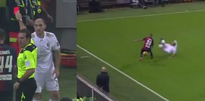 Now 30, the defender is plying his trade for AC Milan over in Italy and was part of the side that started against Genoa on Tuesday night. Unfortunately for him, he wasn’t part of the side that *finished* the game, after his outrageous attempt at a tackle saw him given a straight red by the ref.
