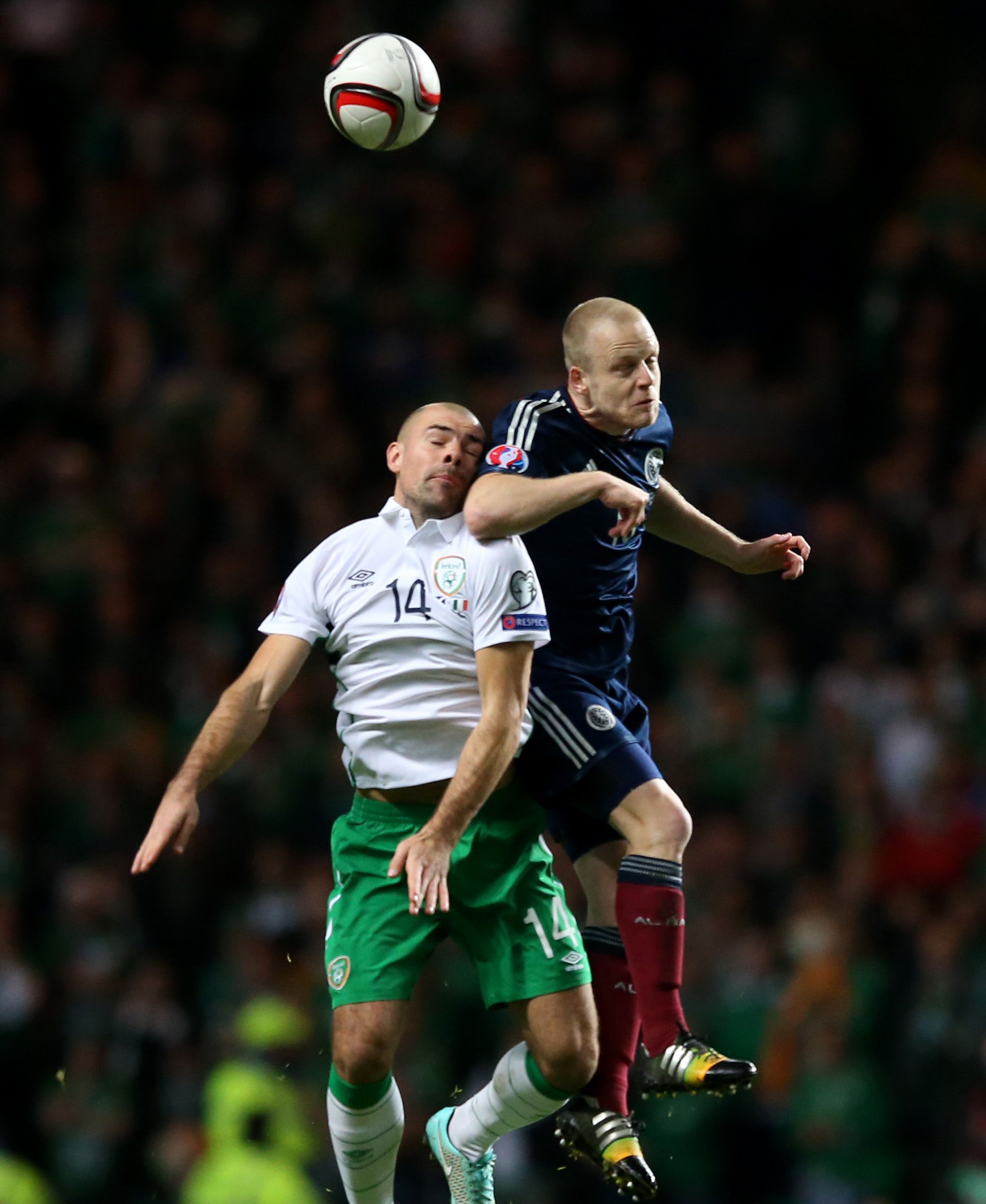 IrelandÕs Darron Gibson and Steven Naismith of Scotland