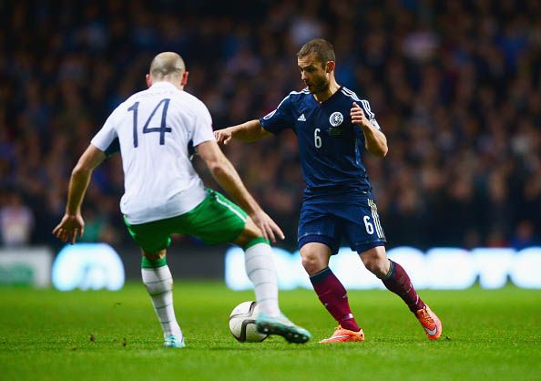 GLASGOW, SCOTLAND – NOVEMBER 14: Shaun Maloney of Scotland takes on Darron Gibson of the Republic of Ireland during the EURO 2016 Group D Qualifier match between Scotland and Republic of Ireland at Hampden Park on November 14, 2014 in Glasgow, Scotland. (Photo by Mark Runnacles/Getty Images)