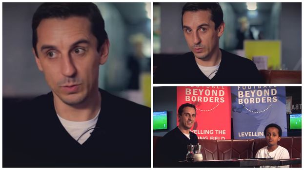 Youngster Rashad was interviewing Neville for Football Beyond Borders, and very nearly caught out the former Manchester United captain.
