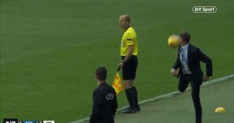 The 38-year-old stretched out his right leg to guide the ball back into the path of one 0f his players with the outside of his foot seconds before the interval, a move which was greeted by cheers from some of the home support.