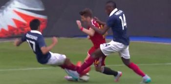 Despite appearing to be a nailed on red card offence, the French left back received no warning for the incident. Fortunately though, Mertins was able to resume playing the match after receiving treatment for about a minute.