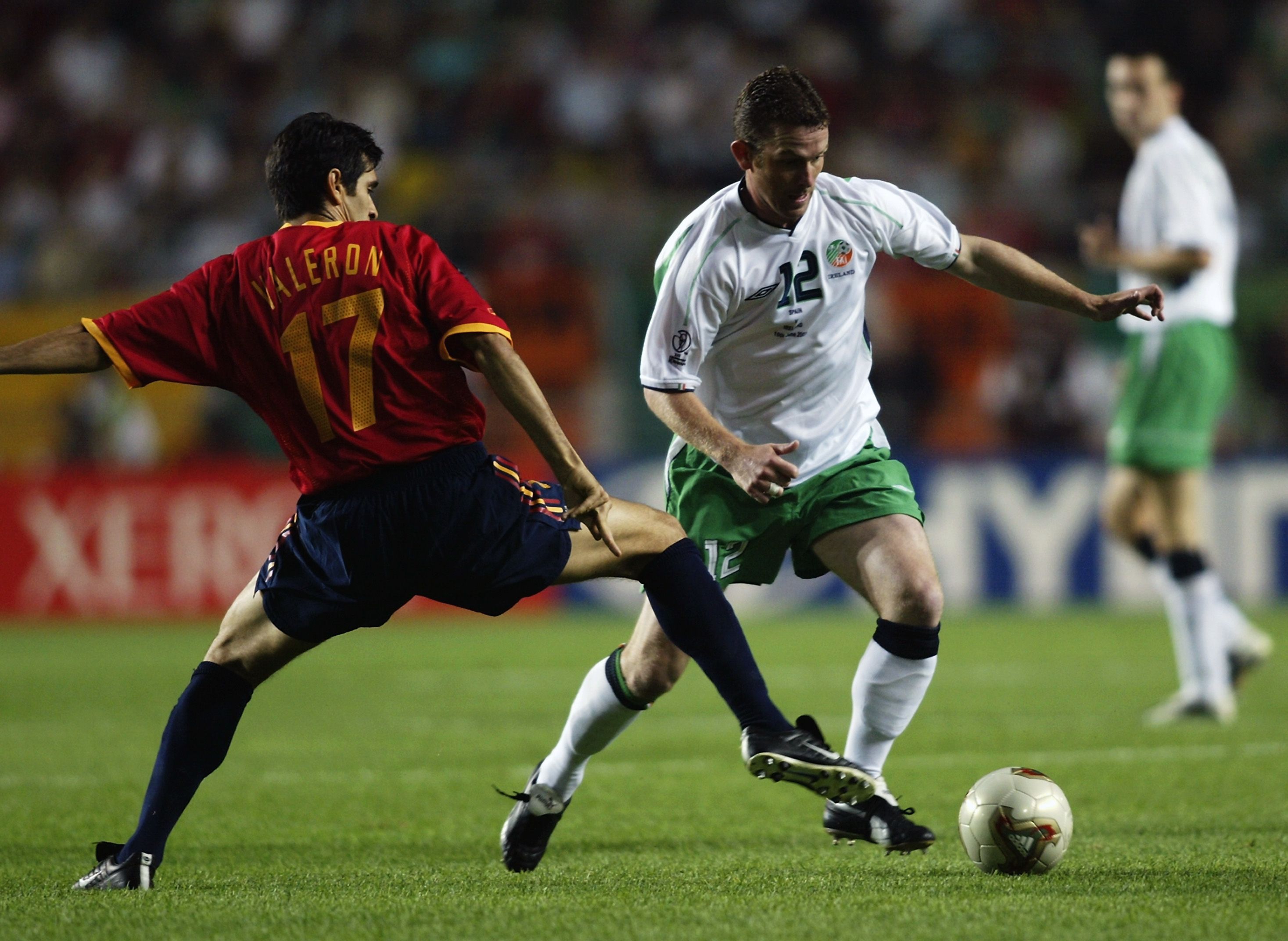 Mark Kinsella of the Republic of Ireland and Juan Carlos Valeron of Spain