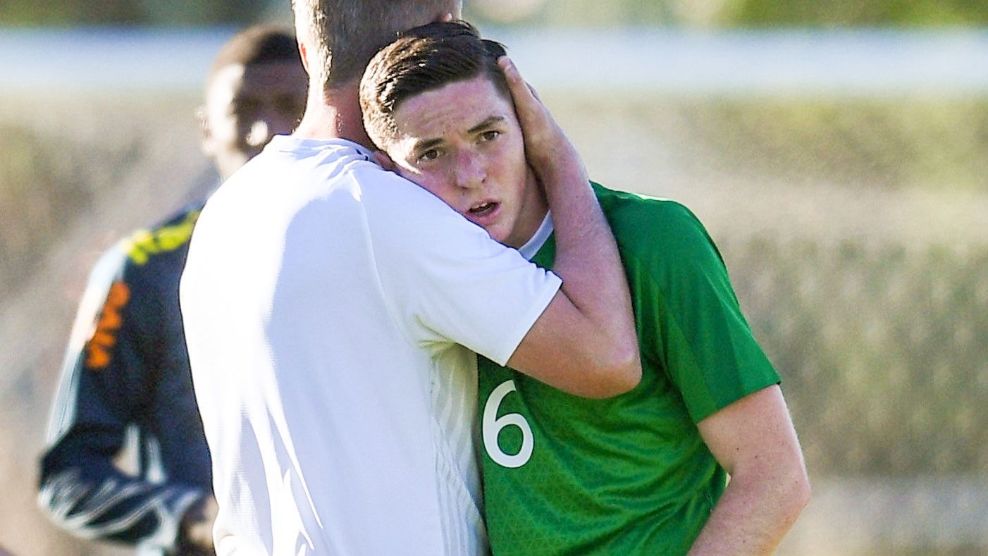 12 June 2019; Stephen Kenny head coach of Ireland and Conor Coventry of Ireland looks dejected after defeat during the 2019 Maurice Revello Toulon Tournament Semi-Final match between Brazil and Republic of Ireland at Stade De Lattre in Aubagne, France. Photo by Alexandre Dimou