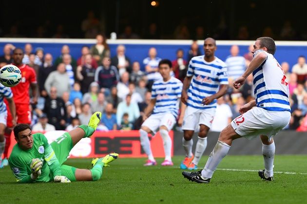 LONDON, ENGLAND – OCTOBER 19: Richard Dunne of QPR scores an own goal past Alex McCarthy during the Barclays Premier League match between Queens Park Rangers and Liverpool at Loftus Road on October 19, 2014 in London, England. (Photo by Paul Gilham/Getty Images)