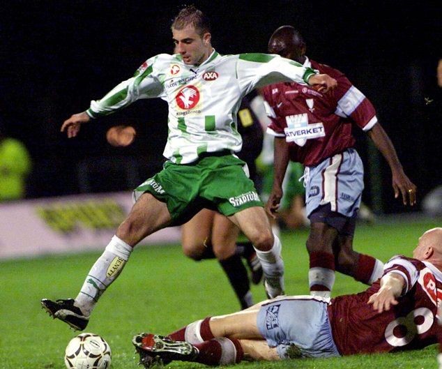 1 Sep 2001: Hammarby’s Kennedy Bakircioglu in action while Malmo’s Peter Sorensen lies on the ground during the Swedish League soccer match played between Hammarby and Malmo the game ended 4-1. Hammarby lead the Swedish League. DIGITAL IMAGE. MandatoryCredit: Pressens Bild/ALLSPORT