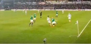 A couple of minutes later he put in a crunching challenge on an offside Tom Ince which saw him shown the yellow card. The crowd didn’t like it and they let the Derry man know all about it. As well as showering him with boos, some fans even hurled abuse and projectiles in his direction.