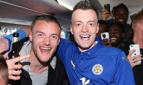 Jamie Vardy invited his lookalike onto the team coach today to celebrate the league title. 😂 pic.twitter.com/exqPWLqqMk