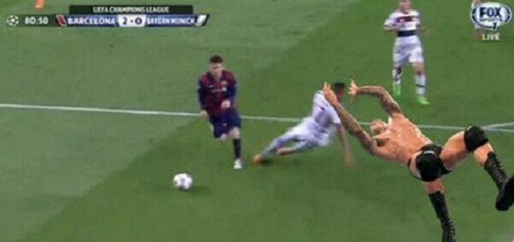 BREAKING: @JB17Official ankles following today's @ChampionsLeague semifinal. #FCBvFCB #DirtyMessi pic.twitter.com/S2qafNAhG9