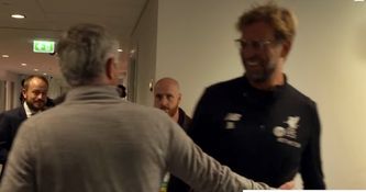 After doing a pre-game chat with Sky Sports, Mourinho is warmly greeted by Liverpool counterpart Jurgen Klopp. There is an embrace and the German reracts wityh a smile to a comment from Mourinho. If both men dislike each other, they are hiding it well.