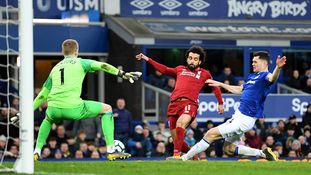 Salah’s touch took him away from Everton’s goal and his effort from inside the penalty area was comfortably saved by Pickford after the Liverpool forward telegraphed his shot.