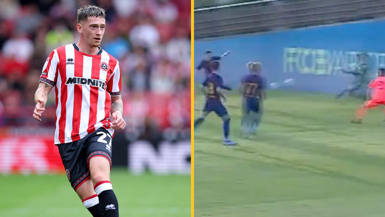 Footage also shows the player scoring on his debut for the Spanish giants’ U19s side back in 2019, during a 6-0 hammering of Ebro.