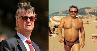 Don't think I've ever seen a manager with sunglasses on.. Van Gaal is a weird man.