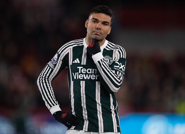 BRENTFORD, ENGLAND - MARCH 30: Casemiro of Manchester United reacts after the Premier League match between Brentford FC and Manchester United at Gtech Community Stadium on March 30, 2024 in Brentford, England. (Photo by Visionhaus/Getty Images)