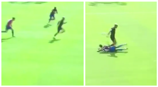 You’ll have to wait for Match of the Day for footage of the tackle (Premier League rules are rules, folks), but the images below illustrate the distance the player makes up on his opponent before making the tackle.