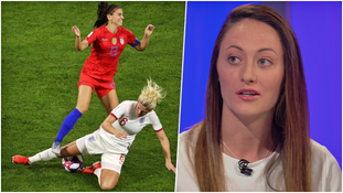 After 86 minutes, with England 2-1 down and soon after Houghton had missed a penalty, Bright went full pelt into a challenge with Morgan, inside the USA half. The Chelsea defender was going for the ball but she mistimed her tackle slightly and ended up laying her studs onto Morgan’s shins.
