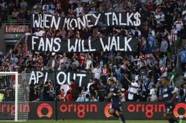 Friday night’s fixture between Newcastle Jets and Brisbane Roar saw Jets fans leave in their thousands and display a banner which read: “Fans > $$.”