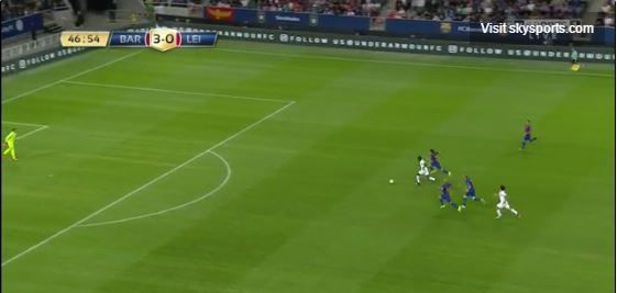He managed to turn his man near the half way line and then accelerated with a ridiculous burst of pace and burned off there Barca men to coolly rifle home.