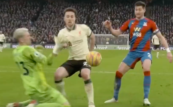 As Diogo Jota ran through on goal to reach a lofted ball over the top, Palace goalkeeper Vicente Guaita came off his line and collided with the Portugal international.