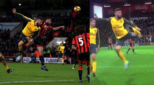 Clearly keen to remind all those in the away end that he was the same bloke that scored the goal against Palace the other day, Giroud produced not one but two imaginary scorpion kicks to celebrate.