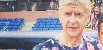 Obviously, the climate in North Africa is a little bit different to that of North London. The blazing sunshine meant that Wenger couldn’t wear his famous long coat for the match. Instead, he did his version of letting his hair down, and wore this incredible t-shirt.