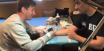 After helping Barcelona secure a 2-0 win over Valencia, Messi took the tattoo gun to famous tattooist Roberto Lopez, and gave him some new body art.