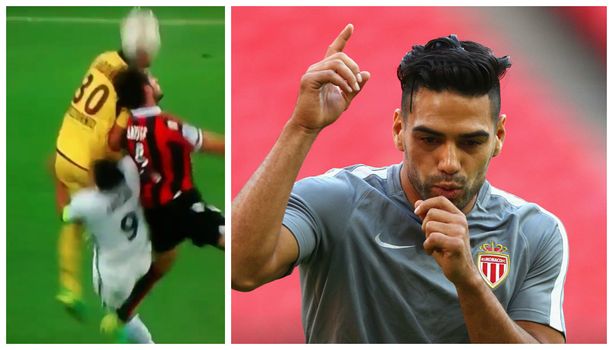 Chasing down a ball on the edge of the Nice area, Falcao was involved in a nasty collision with goalkeeper, Yoan Cardinale.