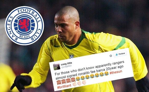 For those who don't know apparently rangers almost signed ronaldo fae barca 20year ago 🙈🙈🙈🙈😂😂😂😂😂😂😂 #thesun #brillliant 👏🏻👏🏻👏🏻