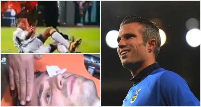 Van Persie suffered a torn eyelid, and television pictures captured blood coming from the striker’s eye as he left the field and waited for an ambulance.
